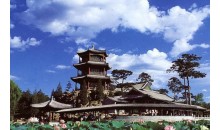 南山積雪亭位于山莊正北、青楓綠嶼南側(cè)的山頂上,是一處借景之作,為“康熙三十六景”第十三景。是山莊的制高點(diǎn)之一。 南山積雪亭為方形四角攢尖式敞亭,面積較大,在此可一覽眾峰。“南山積雪”是觀賞山莊初冬雪景為命題的一組苑景。塞北高寒,山莊之南,峰嶺環(huán)列,嶺上積雪經(jīng)久不消。登亭遙望,群山上的積雪“皓潔凝映,晴日朝鮮,瓊瑤失素”。直到初春時節(jié),仍是“不改冰霜積雪冬”的景象。