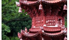 陶塔位于涌泉寺門前兩側(cè)。該對陶瓷千佛塔,高6.83米,于1972年從福州南郊龍瑞寺移來,用作鎮(zhèn)寺之寶。它是宋元豐五年(1082年)用陶土分層燒造,然后拼合累疊而成的。此類以陶燒造的寶塔,在國內(nèi)十分罕見。該對陶塔,東邊的稱“莊嚴劫千佛寶塔”,西邊的稱“賢劫千佛寶塔”。兩塔形式相同,均為八角九層,每座塔壁均貼有雕塑佛像1078尊,八角塔檐上有四方佛72尊,懸掛陶制塔鈴72枚。石砌塔座刻有金剛力士、蓮瓣、舞獅等,刻銘文記述建造時間和捐獻者以及造塔工匠的姓名。
