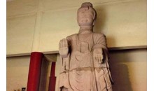 丈八佛石造像亦稱興國寺石造像,坐落在山東省博興縣城東南10公里處的寨郝鄉(xiāng)寨高村西北角,因其身高丈八,俗名丈八佛。佛像坐北面南,全高6.75米,底座高1.5米,底面積7.29平方米,為單身立式圓雕青石造像。佛像高肉髻,面方圓,微笑,豐頤大耳,法相莊嚴,身披“褒衣博帶式”通肩袈裟,內(nèi)著僧支祗,胸前打結(jié),“施無畏與愿印”,赤足立于蓮花座上。