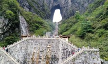 天門洞是世界海拔最高的天然穿山溶洞,三國吳永安六年(公元263年),嵩梁山峭壁轟然洞開,玄朗如門,吳王視為吉祥,亦由此改稱天門山,下置天門郡。