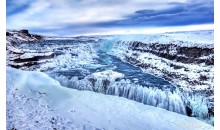 黃金瀑布(Gullfoss)位于冰島首都雷克雅未克以東北125公里外,寬2500米,高70米,為冰島最大的斷層峽谷瀑布, 塔河在這里形成上、下兩道瀑布,下方河道變窄成激流。