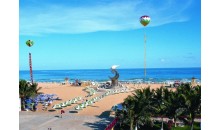 大角灣風(fēng)景名勝區(qū)位于廣東陽江市海陵島西南端,三面群峰拱護(hù),面向浩瀚南海,沙灘長2.5公里,寬100米,因狀似牛角,故名“大角灣”。這里地處南亞熱帶,全年日照時間長,年平均氣溫22.8℃,水溫23.5℃,降雨量1816毫米,年晴天數(shù)310天,四季氣侯宜人,素以陽光燦爛明媚,沙質(zhì)均勻松軟,海水清澈純凈,空氣清新純潔而著稱,各類質(zhì)素均達(dá)國際一類(級)標(biāo)準(zhǔn),又因沙灘寬闊平坦。