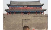 又稱“南門樓”,位于寧夏銀川城東南的南環(huán)東路與中山南街交叉口上,坐北朝南,面臨廣場。門樓通高27.5米,下為高7米的長方形券門洞臺基(東西長37米,南北寬28.1米),臺基北面門洞兩側(cè)筑有對稱臺階,以便登臨其上。高大臺座上是歇山頂?shù)亩又亻軜情w,高20.5米。